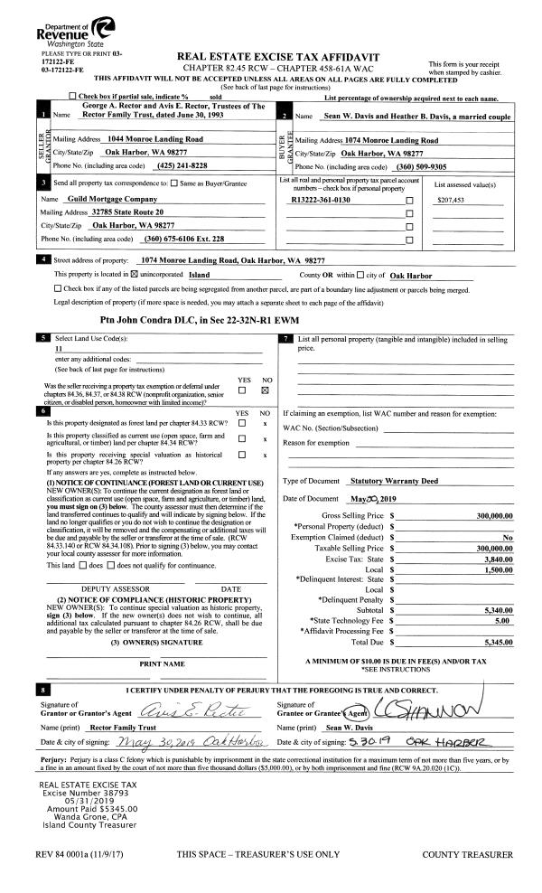 | 1 | 05/30/2019 | WD | Warranty Deed | RECTOR, GEORGE A | DAVIS, SEAN W | | | $300,000.00 | 38793 | 4464589 |