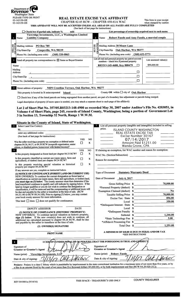| Mailing Address: | SUSAN L WAISTE 550 WATERLINE LOOP CAMANO ISLAND, WA 98282 | % Ownership: | 100.0000000000% |