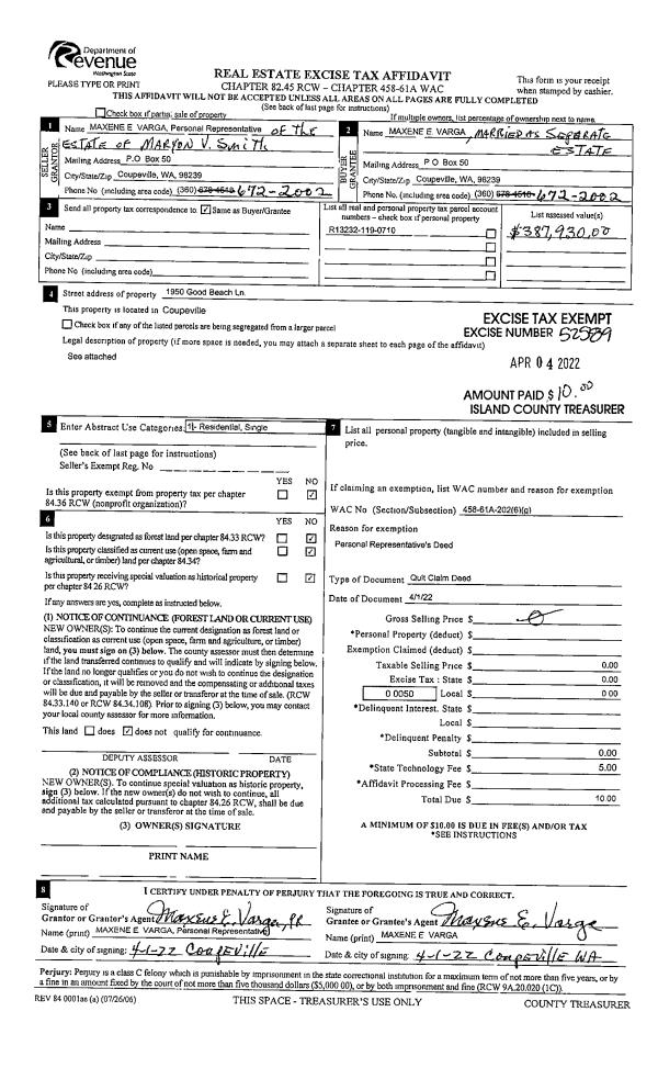 | 3 | 04/01/2022 | PRD | Personal Representatives Deed | SMITH, MARYON V | VARGA, MAXENE E | | | $0.00 | 52589 | 4542765 |