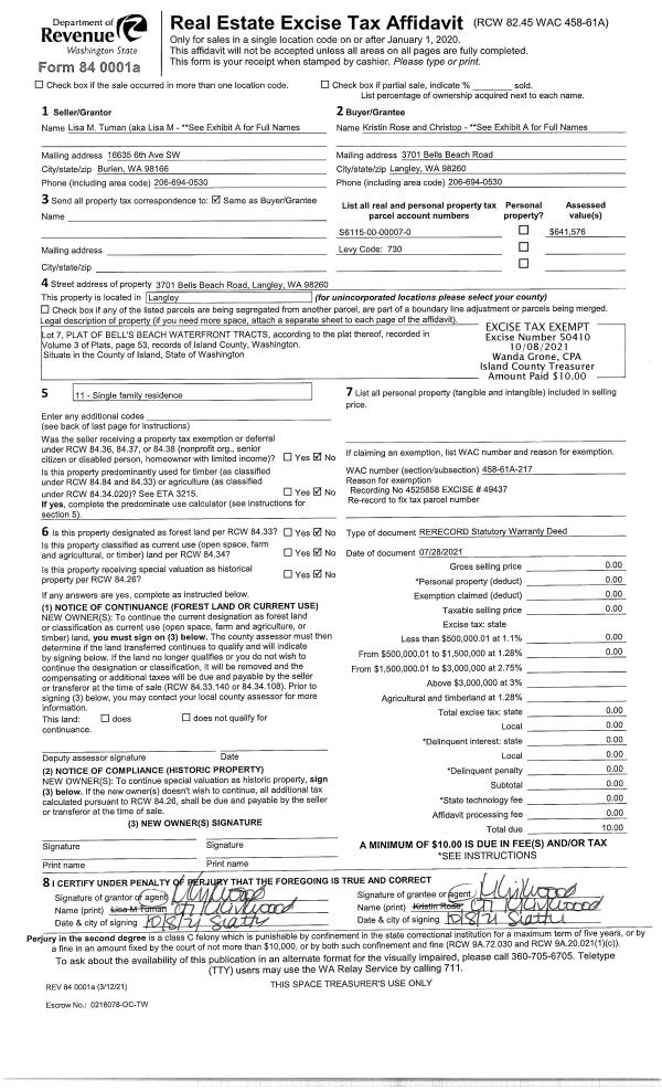 | Mailing Address: | 9829 NORTHEAST 25TH ST BELLEVUE, WA 98004 | % Ownership: | 100.0000000000% |
