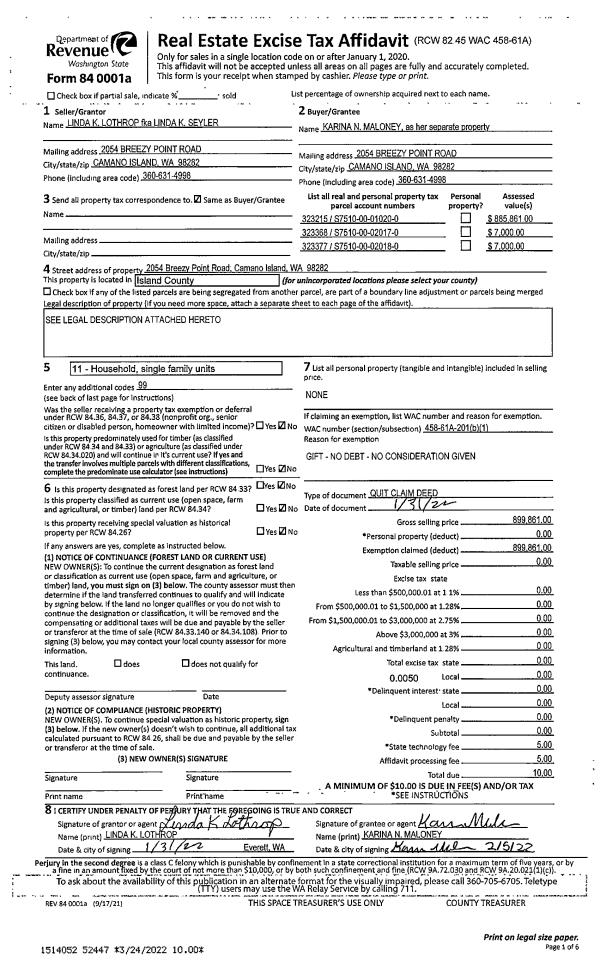 | 1 | 03/17/2022 | QCD | Quit Claim Deed | MAURSTAD, GARY BRUCE | MAURSTAD, KATHLEEN | | | $0.00 | 52472 | 4542277 |