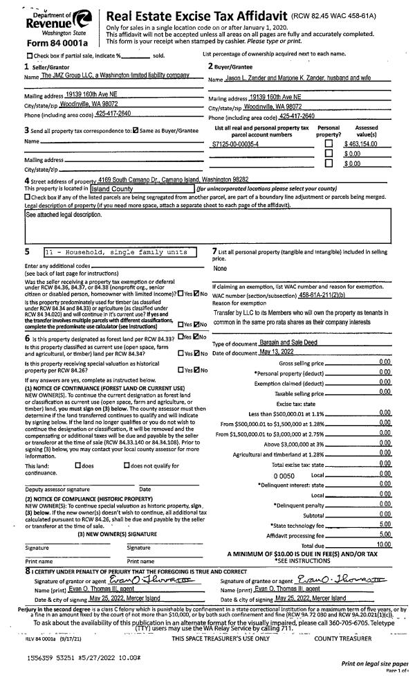 | 2 | 05/13/2022 | BARGSLD | Bargain And Sale Deed | THE JMZ GROUP LLC | ZANDER, JASON L | | | $0.00 | 53251 | 4545818 |