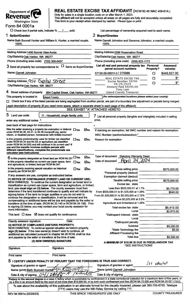 | Mailing Address: | SAVANNA JOHNSTON 954 CAPITAL ST OAK HARBOR, WA 98277 | % Ownership: | 100.0000000000% |