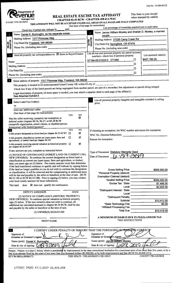 | 4 | 06/27/2019 | WD | Warranty Deed | BURROUGHS, DANIEL K | MOSLEY, JAMES WILLIAM | | | $585,000.00 | 39253 | 4466515 |