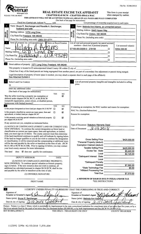 | 1 | 02/14/2018 | WD | Warranty Deed | BARCHENGER, BRUCE R | ADAMS, MELINDA A | | | $425,000.00 | 32956 | 4439270 |