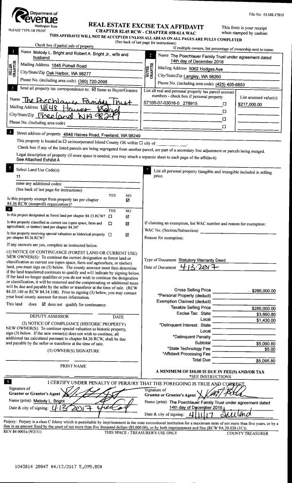 | 2 | 04/13/2017 | WD | Warranty Deed | BRIGHT JR, ROBERT A | POECHLAUER TRUSTEE, KURT | | | $286,000.00 | 28847 | 4420638 |