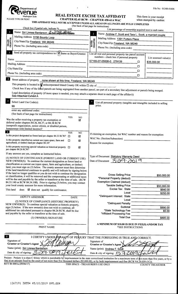 | Mailing Address: | TARA L SCOTT 1391 PUTTER PLACE FREELAND, WA 98249 | % Ownership: | 100.0000000000% |