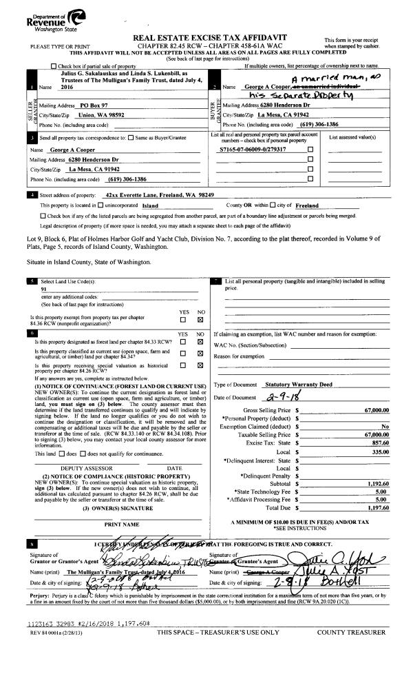 | 2 | 02/09/2018 | WD | Warranty Deed | SAKALAUSKAS TRUSTEE, JULIUS G | COOPER, GEORGE A | | | $67,000.00 | 32983 | 4439390 |