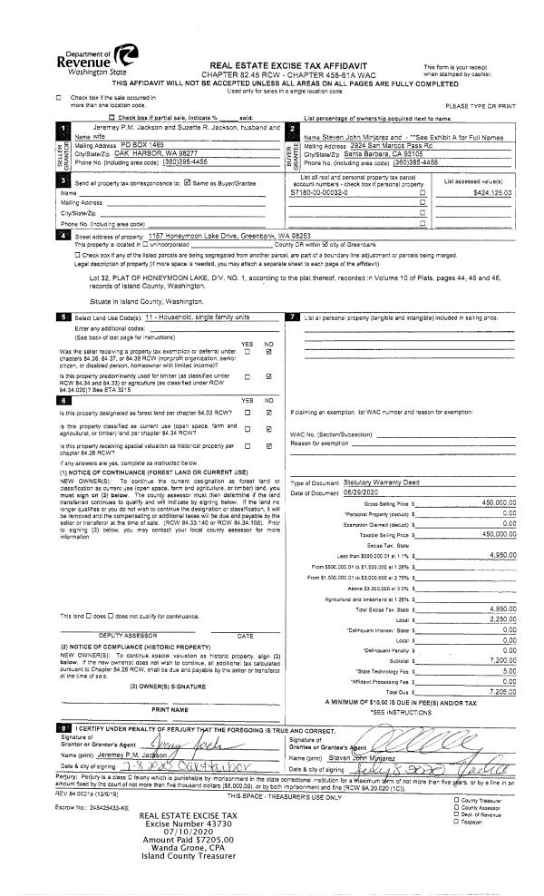 | 1 | 06/29/2020 | WD | Warranty Deed | JACKSON, JEREMEY P M | MINJAREZ TTEE, STEVEN JOHN | | | $450,000.00 | 43730 | 4490916 |