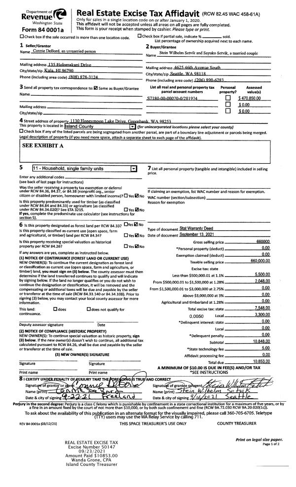 | 1 | 09/13/2021 | WD | Warranty Deed | DEBORD, CONNIE | SETVIK, STEIN WILHELM | | | $660,000.00 | 50147 | 4529782 |