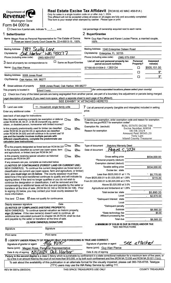 | Mailing Address: | KAREN LOUISE PIERCE 5008 JONES RD OAK HARBOR, WA 98277 | % Ownership: | 100.0000000000% |