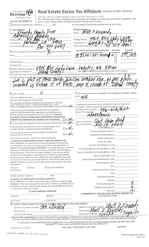 | Tax Area: | 710 - APPRAISER-S Whid Schl Dist, outside Langley, improved & 1 acre or less | Land Use Code | 11 |