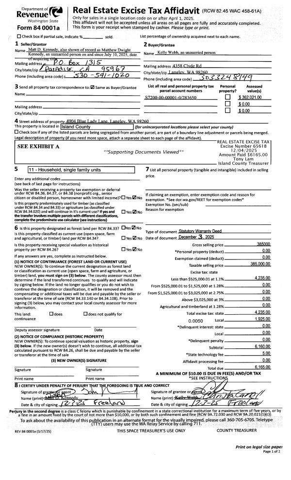 | Mailing Address: | 4904 BLUE LADY LN LANGLEY, WA 98260 | % Ownership: | 100.0000000000% |