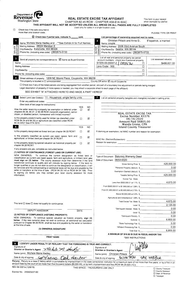 | 1 | 06/02/2020 | WD | Warranty Deed | HADLEY, MICHELE MARIE | PITTACK, CHRISTIAN | | | $425,000.00 | 43376 | 4488894 |