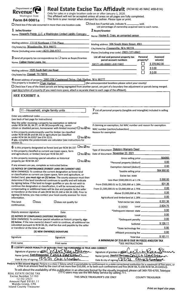 | Mailing Address: | %CAROL COOK PO BOX 1573 CAMANO ISLAND, WA 98282 | % Ownership: | 100.0000000000% |