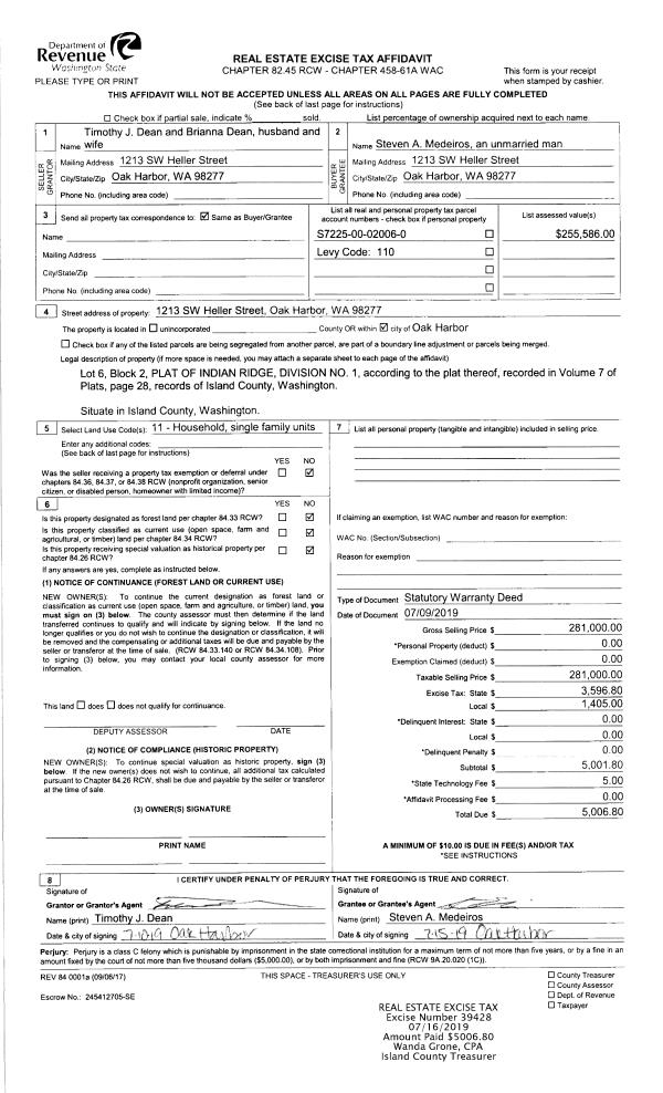 | 2 | 07/09/2019 | WD | Warranty Deed | DEAN, TIMOTHY J | MEDEIROS, STEVEN A | | | $281,000.00 | 39428 | 4467328 |