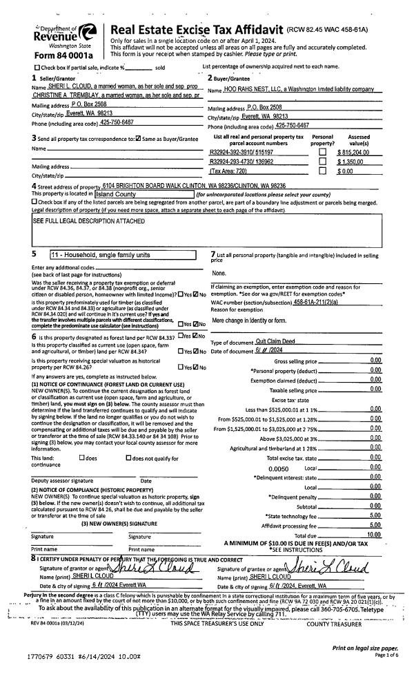 | Mailing Address: | 1832 ZYLSTRA RD OAK HARBOR, WA 98277 | % Ownership: | 100.0000000000% |