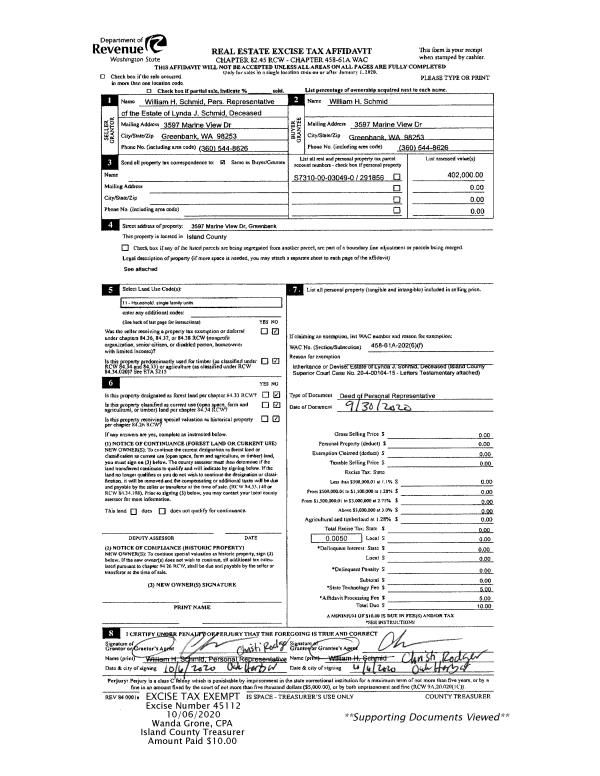 | 2 | 09/30/2020 | WD | Warranty Deed | SCHMID, WILLIAM H | SCHMID, WILLIAM H | | | $0.00 | 45112 | 4498681 |