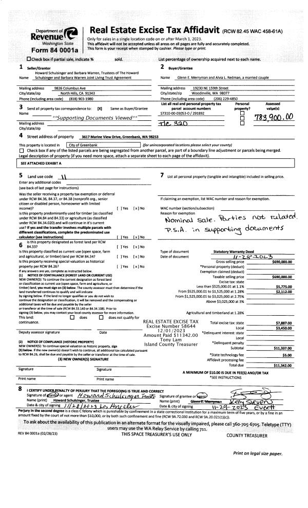| 1 | 11/28/2023 | WD | Warranty Deed | SCHULSINGER TRUSTEE, HOWARD | MERRYMAN, GLENN E | | | $690,000.00 | 58644 | 4567185 |