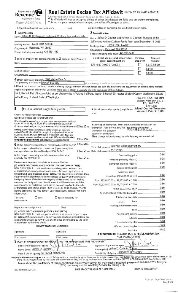 | 1 | 12/15/2025 | WD | Warranty Deed | COCHRAN, KATHRYN ANN | JEFFREY AND KATHRYN COCHRAN FAMILY TRUST | | | $0.00 | 65721 | 4594672 |
