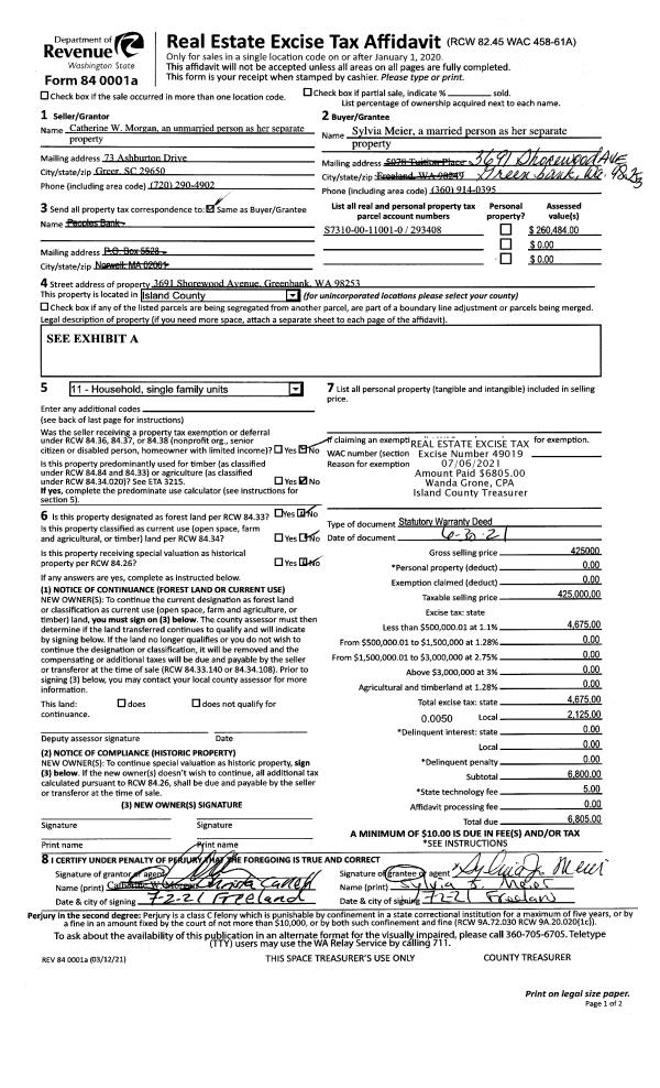 | 2 | 06/30/2021 | WD | Warranty Deed | MORGAN, CATHERINE W | MEIER, SYLVIA | | | $425,000.00 | 49019 | 4523555 |