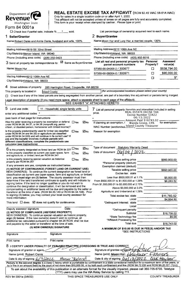 | 1 | 06/09/2022 | WD | Warranty Deed | OSNIS, ROBERT | HUR, MOON | | | $990,900.00 | 53422 | 4546532 |