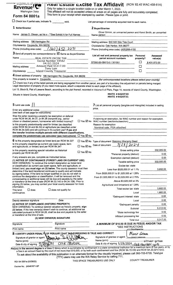 | 3 | 03/28/2024 | WD | Warranty Deed | OLESEN, JAMES D | GRIMM, OLIVER | | | $332,000.00 | 59562 | 4570864 |