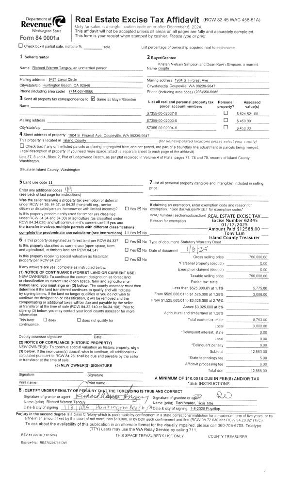 | 1 | 01/08/2025 | WD | Warranty Deed | TANGUY, RICHARD W | SIMPSON, KRISTEN NIELSEN | | | $760,000.00 | 62345 | 4581395 |