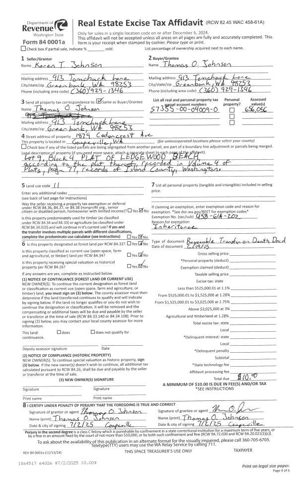 | Mailing Address: | 913 TOMCHUCK LN GREENBANK, WA 98253 | % Ownership: | 100.0000000000% |