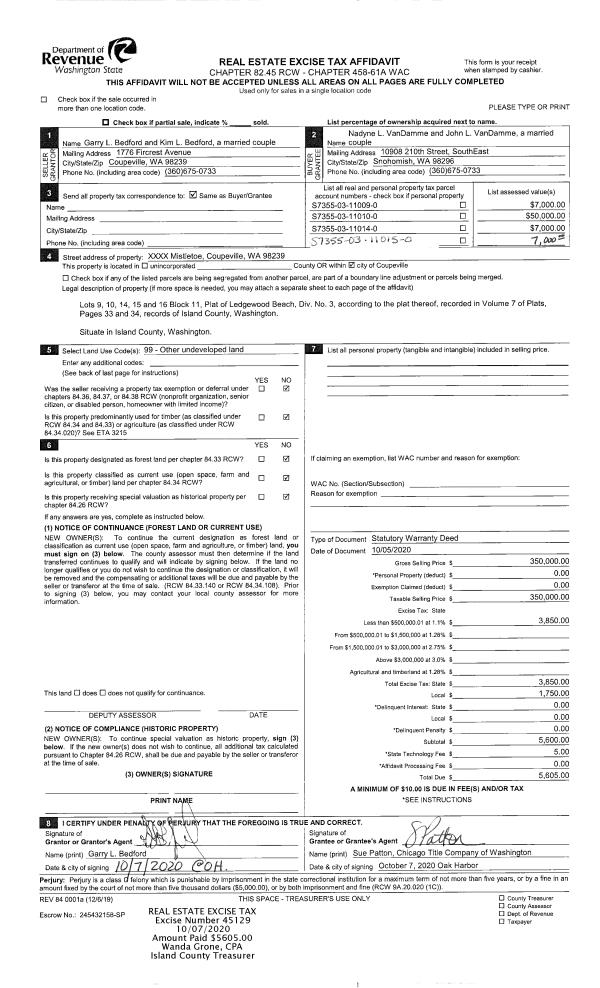 | 1 | 10/05/2020 | WD | Warranty Deed | BEDFORD, GARRY L | VANDAMME, NADYNE L | | | $350,000.00 | 45129 | 4498808 |