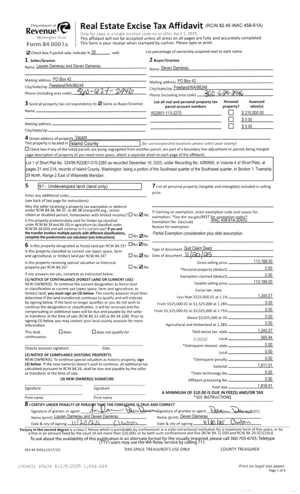| Tax Area: | 710 - APPRAISER-S Whid Schl Dist, outside Langley, improved & 1 acre or less | Land Use Code | 11 |