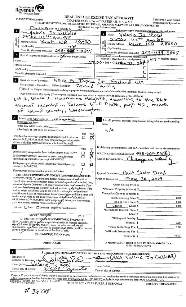 | 1 | 04/25/2019 | QCD | Quit Claim Deed | HAMEL, ORA V | HAMEL, ORA V | | | $0.00 | 38427 | 4462961 |