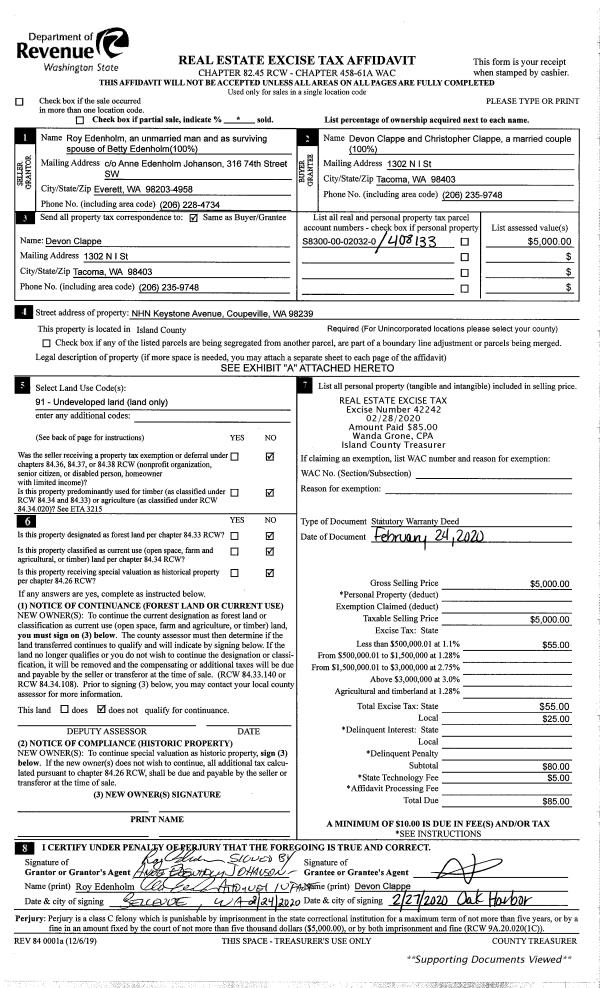 | Mailing Address: | 5254 DELPHI DR LANGLEY, WA 98260 | % Ownership: | 100.0000000000% |