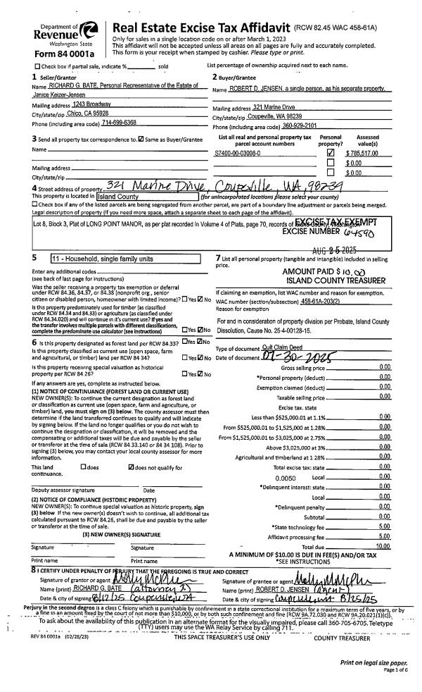 | 1 | 07/30/2025 | QCD | Quit Claim Deed | JENSEN, ROBERT D / JANICE K | JENSEN, ROBERT D | | | $0.00 | 64590 | 4590040 |