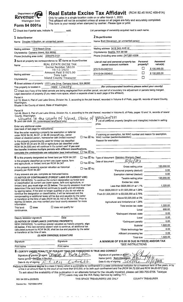 | 1 | 10/06/2023 | WD | Warranty Deed | BOULTON, DOUGLAS H | STEVENSON, BRETT | | | $120,000.00 | 58220 | 4565631 |