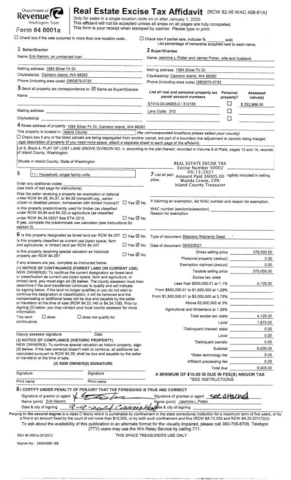 | 1 | 09/13/2021 | WD | Warranty Deed | KLEMM, WILLIAM PAUL | POTTER, JASIMINE L | | | $375,000.00 | 50002 | 4528945 |