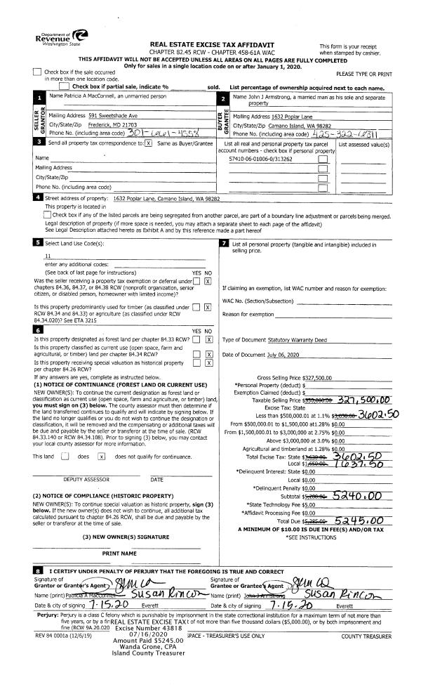 | 2 | 07/06/2020 | WD | Warranty Deed | MACCONNELL, PATRICIA A | ARMSTRONG, JOHN J | | | $327,500.00 | 43818 | 4491367 |