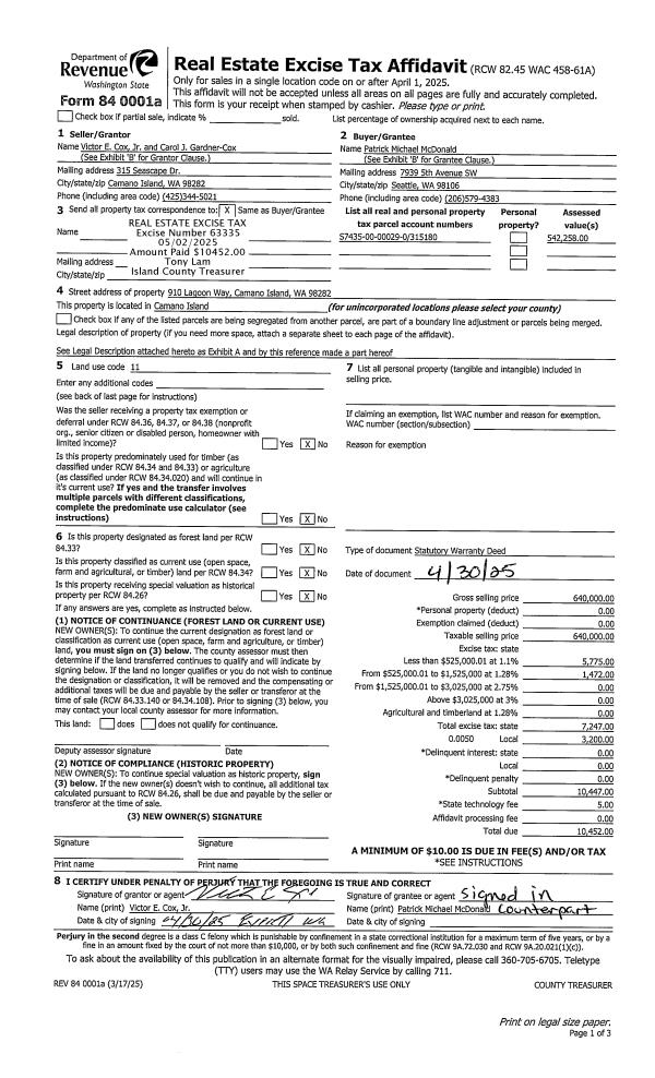 | 1 | 04/30/2025 | WD | Warranty Deed | COX, VICTOR E | MCDONALD, PATRICK MICHEAL | | | $640,000.00 | 63335 | 4585255 |