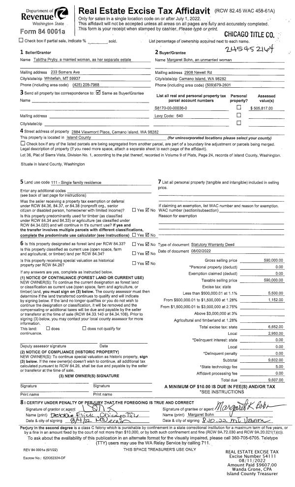 | Mailing Address: | JOAN L MCCONNELL 166 N SUNSET DR CAMANO ISLAND, WA 98282-7316 | % Ownership: | 100.0000000000% |
