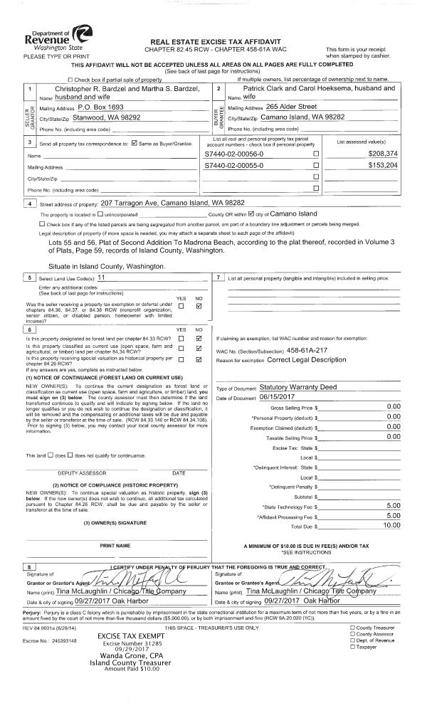 | 4 | 06/15/2017 | WD | Warranty Deed | BARDZEL, CHRISTOPHER R | CLARK, PATRICK | | | $260,000.00 | 29843 | 4424689 |