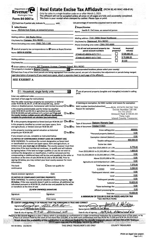 | 1 | 10/09/2023 | WD | Warranty Deed | KRPAN, MELINDA KATE | DECOTEAU, JANELLE R | | | $650,000.00 | 58198 | 4565546 |