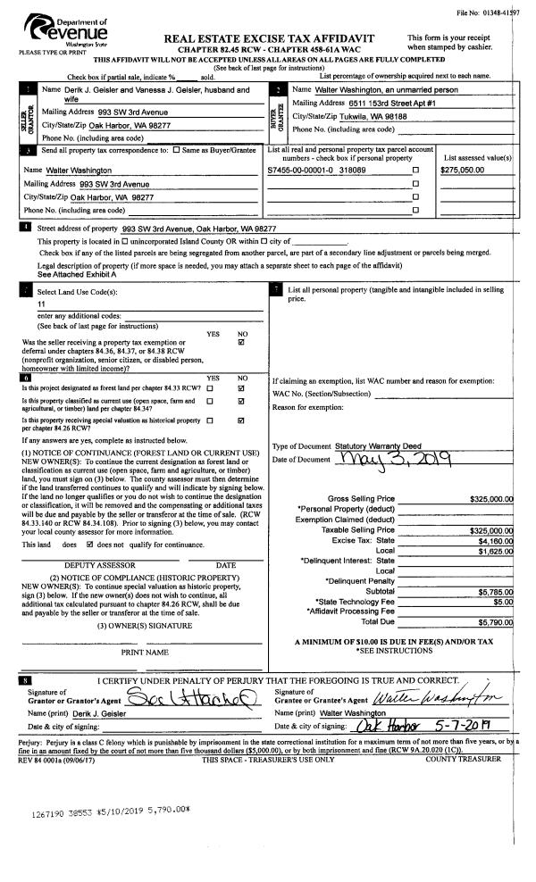 | 2 | 05/03/2019 | WD | Warranty Deed | GEISLER, DERIK J | WASHINGTON, WALTER | | | $325,000.00 | 38553 | 4463566 |