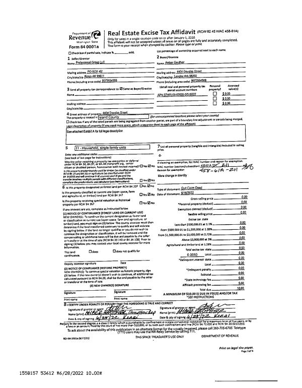 | Mailing Address: | 4404 DOUGLAS ST LANGLEY, WA 98260 | % Ownership: | 100.0000000000% |