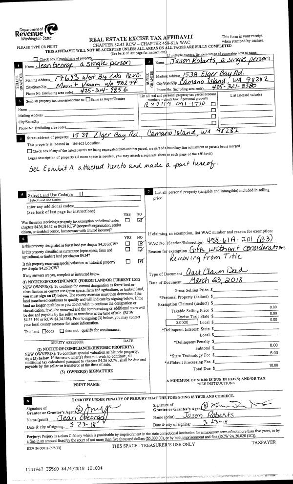 | 4 | 03/28/2016 | QCD | Quit Claim Deed | SHOCKLEY JTWROS, WILLIAM L | SHOCKLEY JTWROS, WILLIAM L | | | $0.00 | 23690 | 4396567 |