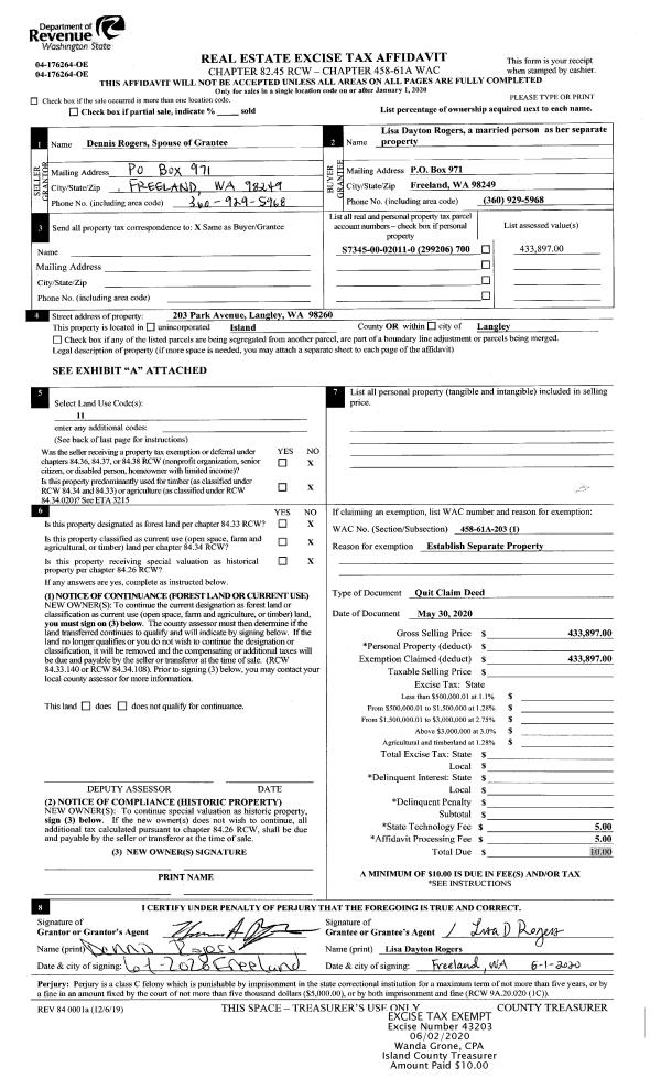 | Mailing Address: | 2158 MARINER BEACH DR OAK HARBOR, WA 98277 | % Ownership: | 100.0000000000% |