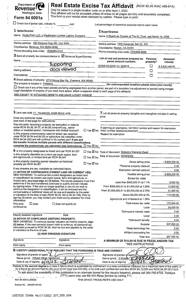 | 1 | 06/06/2022 | WD | Warranty Deed | HUNTS POINT LLC | ROACH TTEE, O | | | $6,800,000.00 | 53486 | 4546763 |