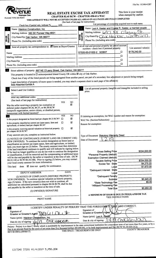 | 2 | 01/02/2019 | WD | Warranty Deed | WALDRON CONSTRUCTION INC | KESTER, LEVI A | | | $334,000.00 | 37201 | 4457487 |