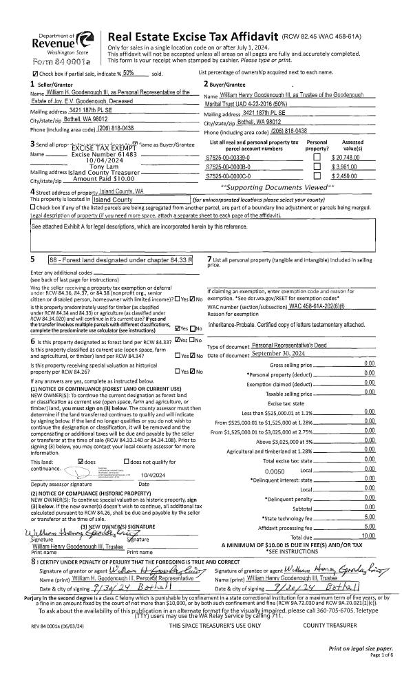 | 1 | 09/30/2024 | PRD | Personal Representatives Deed | ESTATE OF JOY E.V. GOODENOUGH | GOODENOUGH III TTEE, WILLIAM HENRY | | | $0.00 | 61483 | 4577894 |