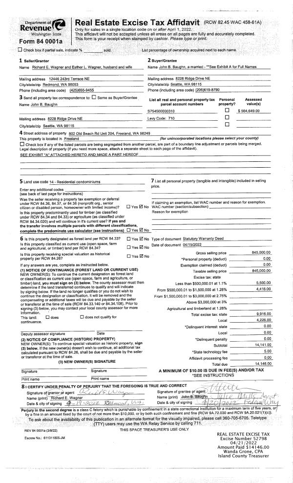 | 3 | 04/15/2022 | WD | Warranty Deed | WAGNER, RICHARD E | BAUGHN ET AL, JOHN B | | | $845,000.00 | 52798 | 4543791 |