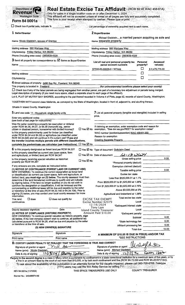 | 1 | 12/13/2024 | QCD | Quit Claim Deed | GLADSTEIN, NICOLE | GLADSTEIN, MICHAEL | | | $0.00 | 62079 | 4580417 |